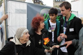 Eine besondere Begegnung hatten Max-Fabian und Jamal mit der Hamburger Autorin Peggy Parnass, 78, deren beide Eltern im Vernichtungslager Treblinka von den Nationalsozialisten ermordet wurden, und mit Esther Bejarano, 88, eine der letzten bekannten Überlebenden des Mädchenorchesters des Konzentrationslagers von Ausschwitz.