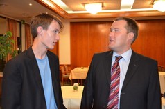 Max-Fabian und Jamal waren Ehrengäste bei der Verleihung Integrationspreise des Fußball-Landesverbandes Brandenburg. Hier im Gespräch mit FLB-Geschäftsführer Michael Hillmann.